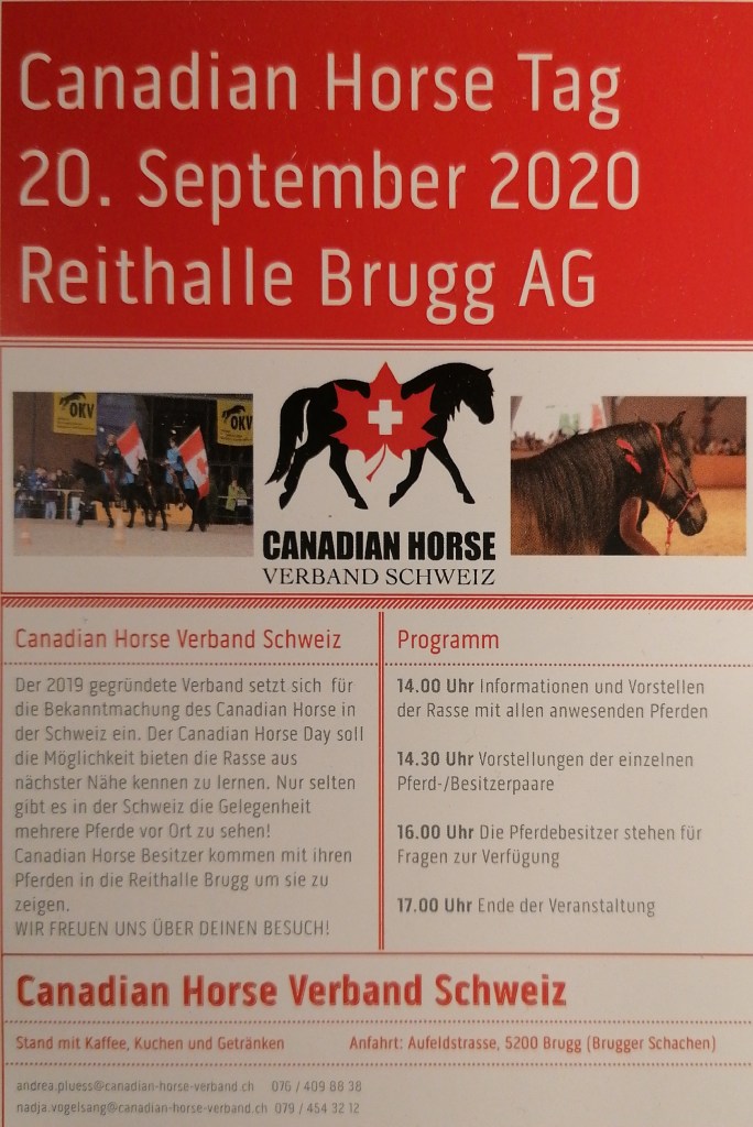 Der Canadian Horse Verband Schweiz organisiert diesen Tag mit dem Ziel Interessierten die Möglichkeit zu geben, die Rasse Canadian Horse hautnah kennen zu lernen.