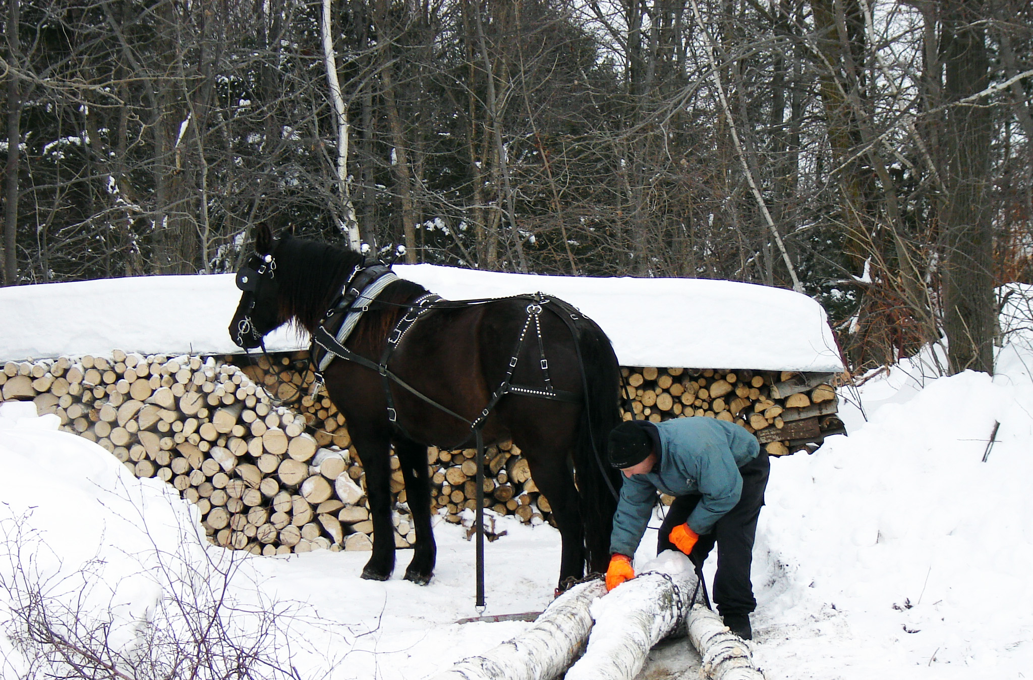 Einsatz eines Canadian Horse bei der traditionellen Arbeit