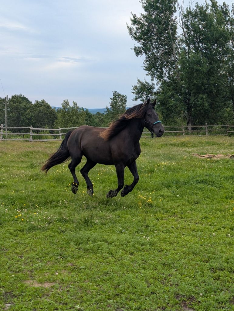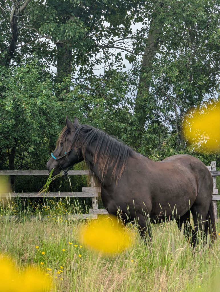 Der Kleine hat von beiden Eltern eine schöne Mähne und einen harmonischen Körperbau geerbt. Er ist menschenbezogen und freundlich. Wie all unsere Fohlen wird er seinem Alter entsprechend regelmässig an den Umgang mit dem Menschen gewöhnt und lernt alles, was ein Jungpferd lernen soll.